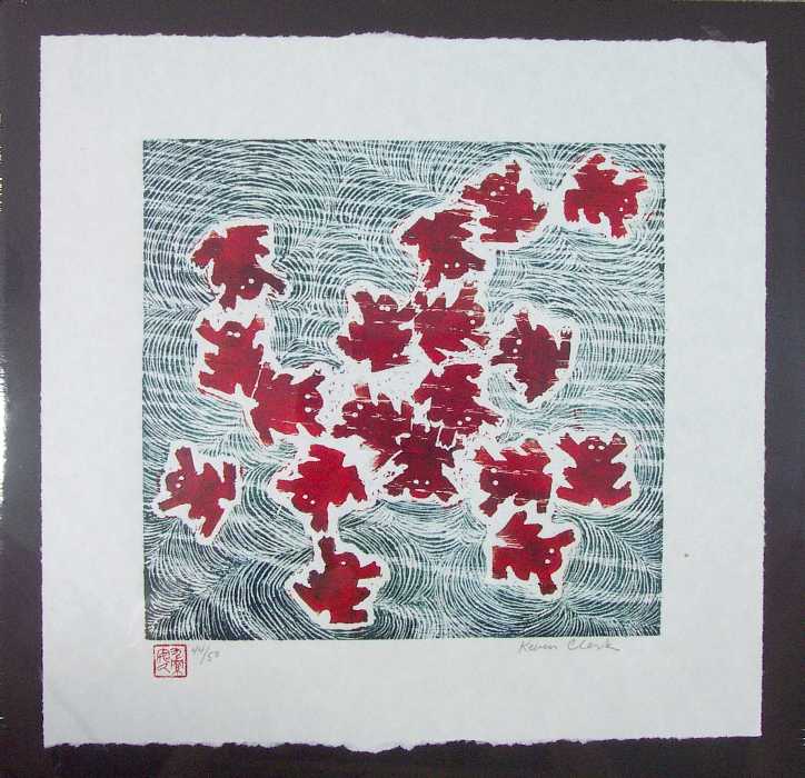 background. Once full edition of 50 prints completed, Clark "strikes his initials" into the