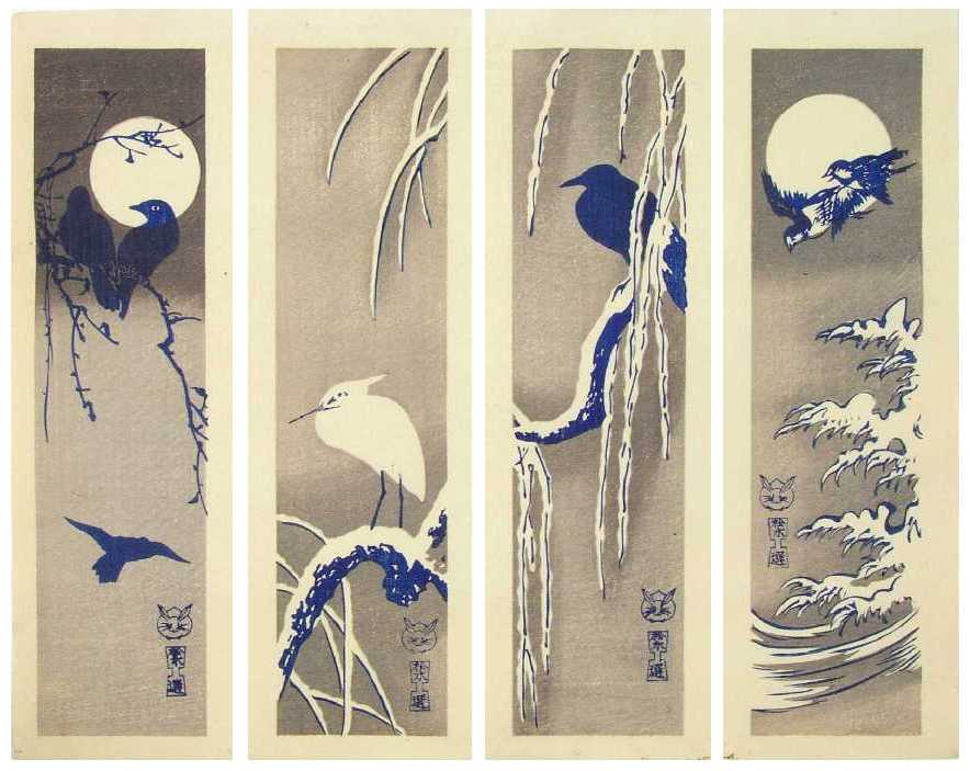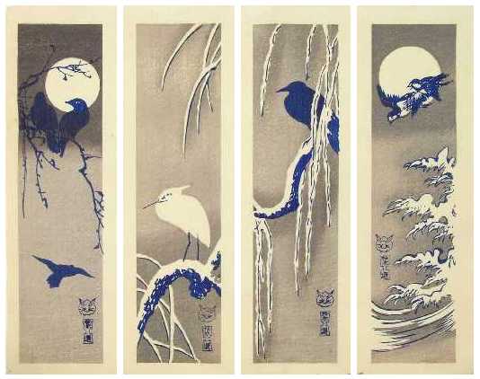 format) prints of birds/flowers/bamboo designs done as "azuri-e" (shades of blue).