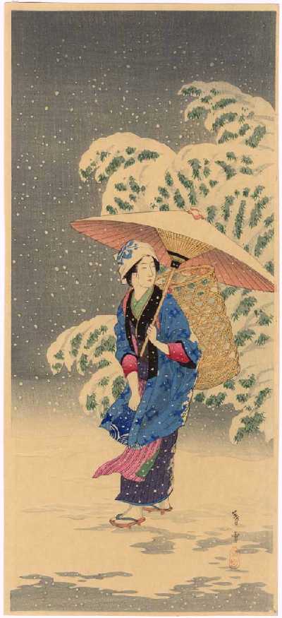 Very Fine. Superbly executed "bokashi" shading; "gauffrage" to accumulated snow, snow patches at