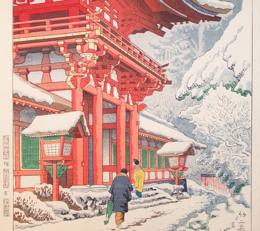 "Snow in Kamigamo Shrine, Kyoto" ("Kamigamo Jinja Yuki") |