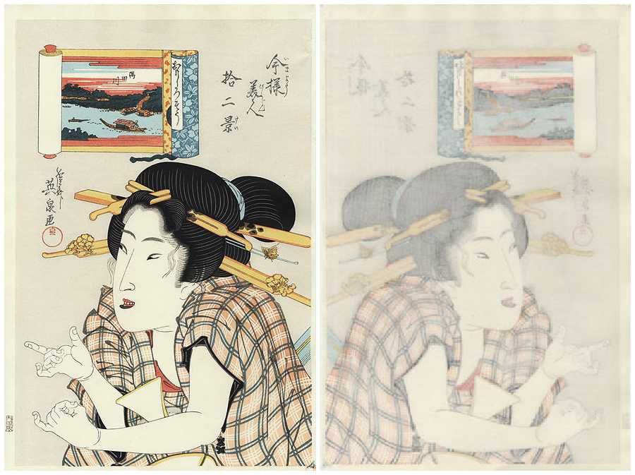 Very Fine. Skillfully executed "bokashi" shading; light "gauffrage"