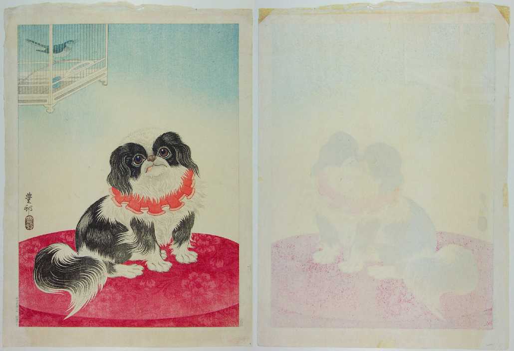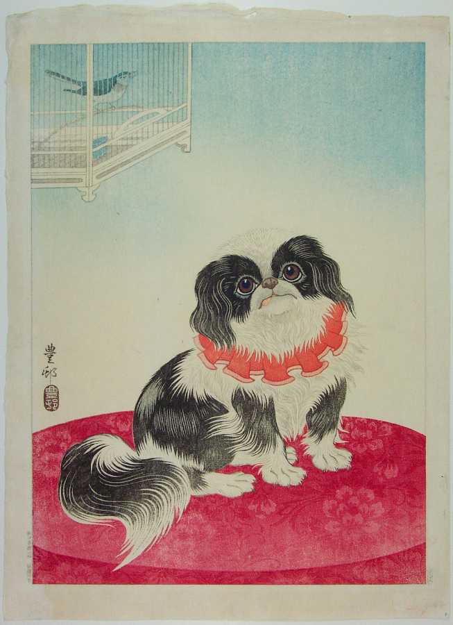 (aka "Pekingese Dog and Bush Warbler") |