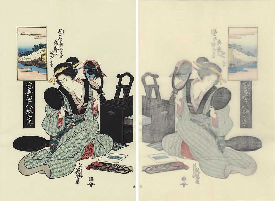 Very Fine. Skillfully executed "bokashi" shading; crisp, highly detailed carving. |