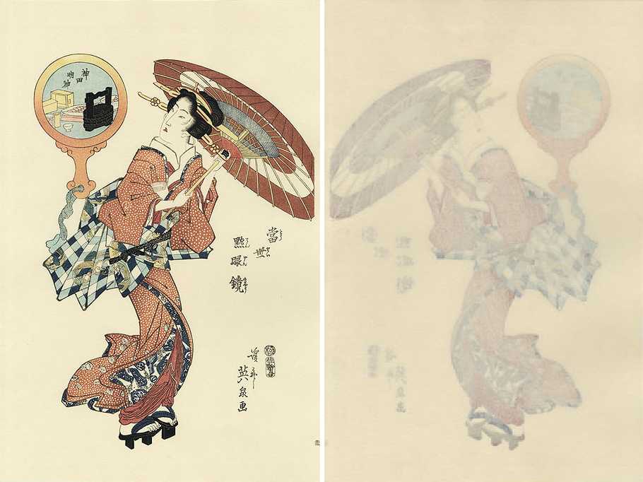 Very Fine. Skillfully executed "bokashi" shading; light "gauffrage" to