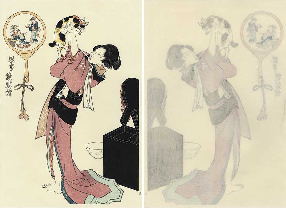 light "gauffrage" to kimono, cat, and towel;