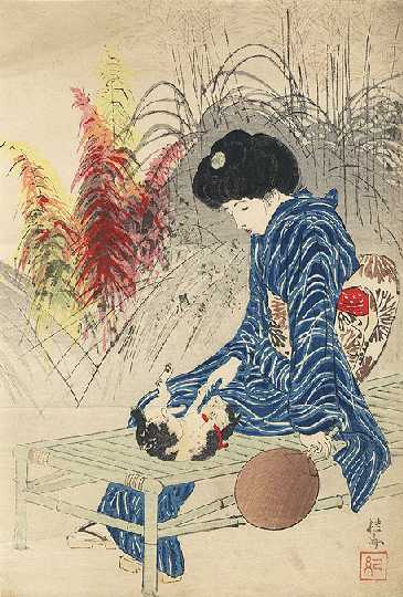 "Beauty Playing with Kitten" ("Wakamizu) |