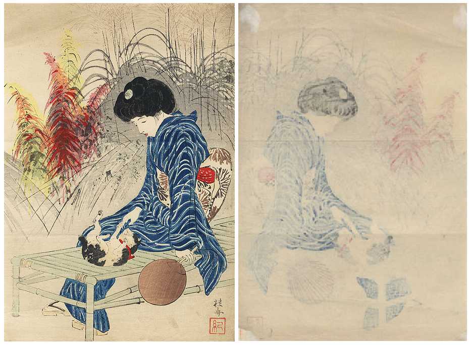 Very Fine. Skillfully executed "bokashi" shading; light "gauffrage" to