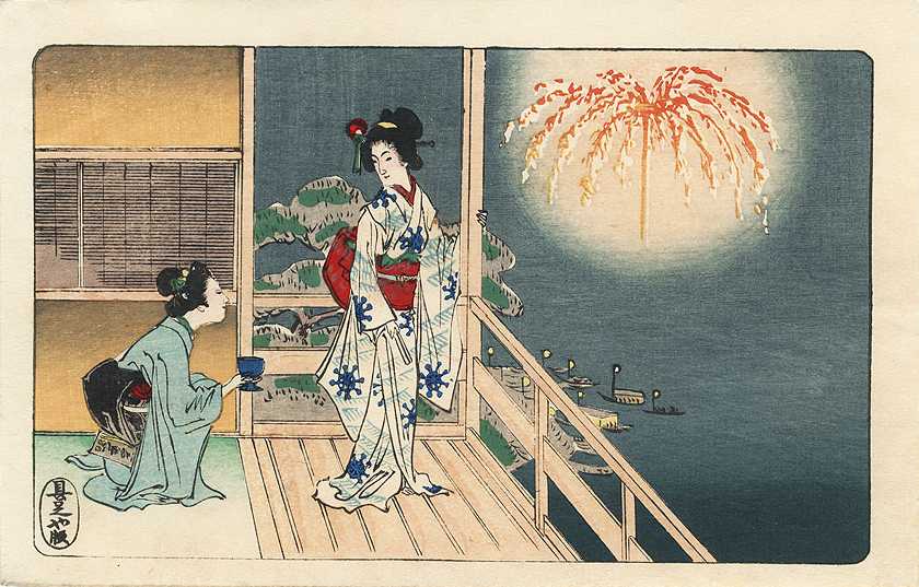 A delightful series of Meiji-era prints showing beauties engaged in a variety