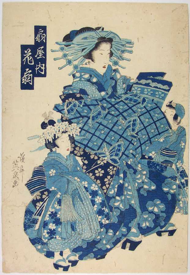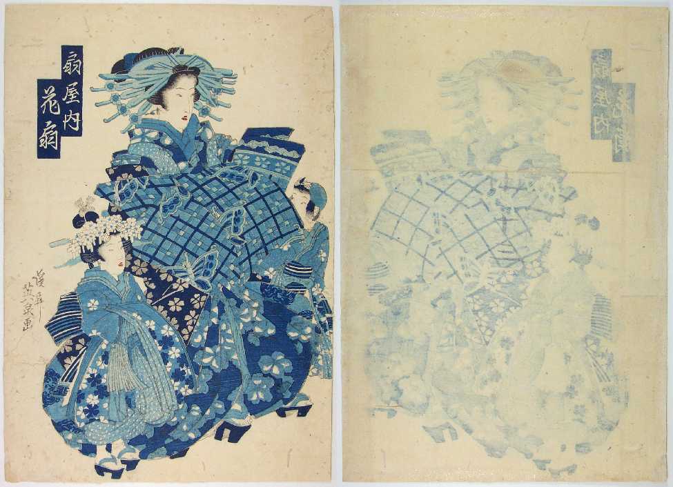 Beautiful image printed as an "aizuri-e" (shades of blue) print.