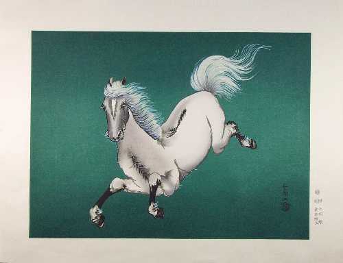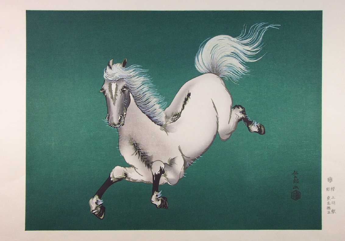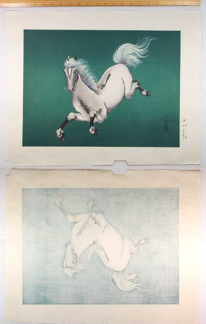 Very Fine. Skillfully executed "bokashi" shading to horse' body and
