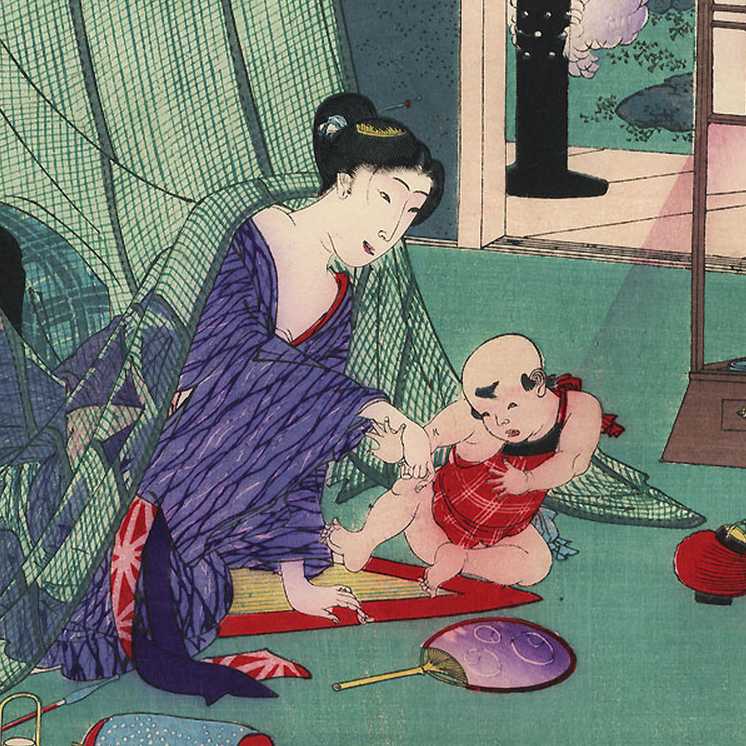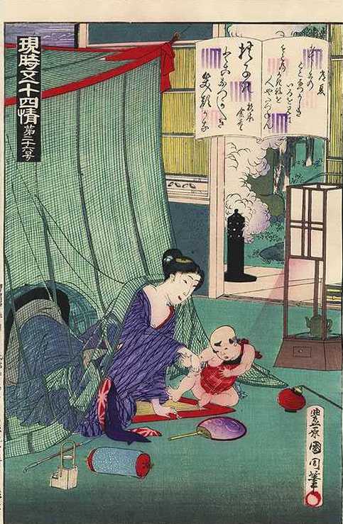 light "gauffrage" to title cartouch, netting, and kimono;