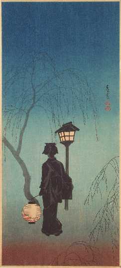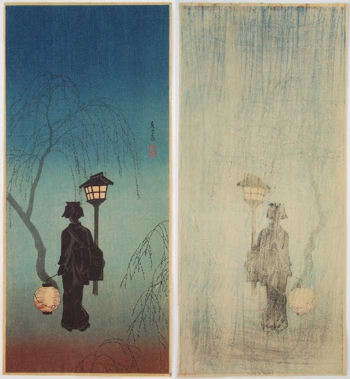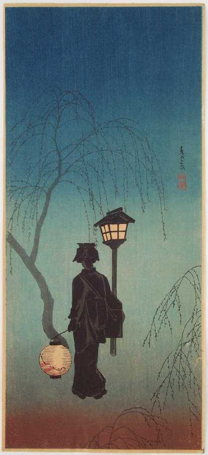 Very Fine. Superbly executed "bokashi" shading; light "gauffrage" to trees, girl,