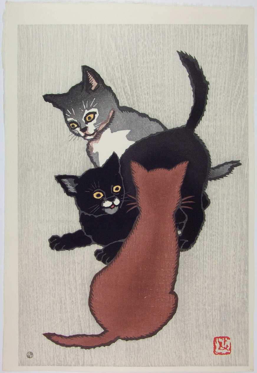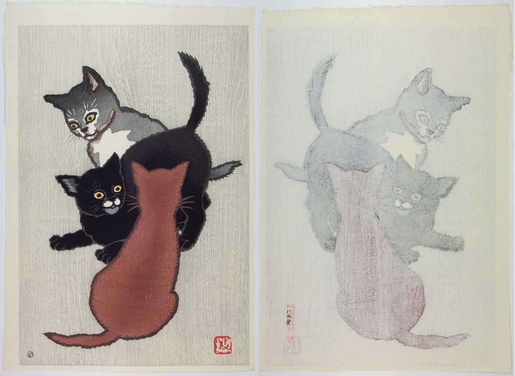Very Fine. Bold "sosaku hanga" style carving; soft "bokashi" shading