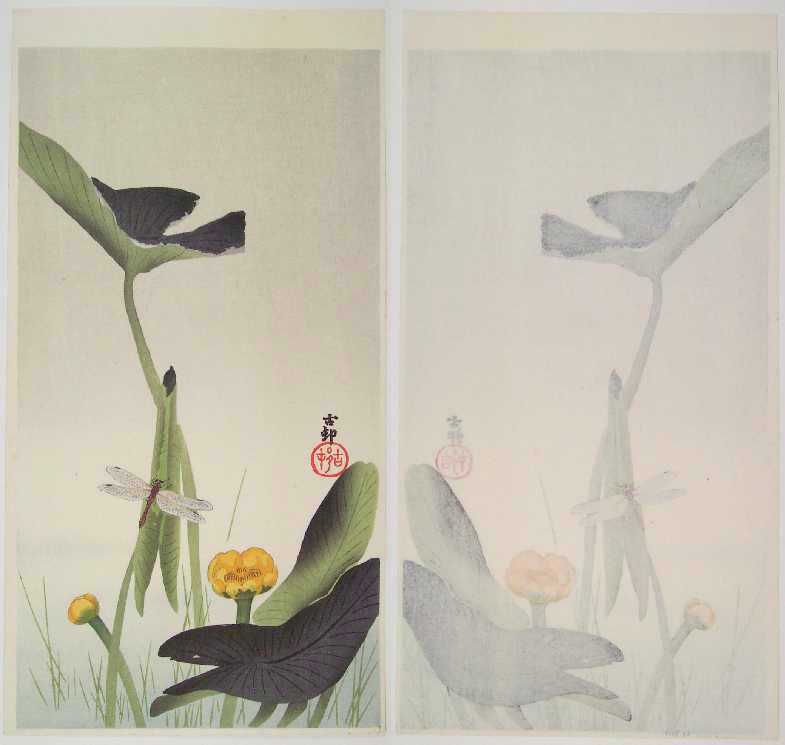 Very Fine. Skillfully executed "bokashi" shading throughout; nicely visible woodgrain in background; crisp