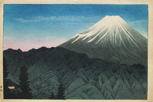 A splendid Shotei "oban" Fuji image which retains soft pink to lower sky. Rarely seen. |
