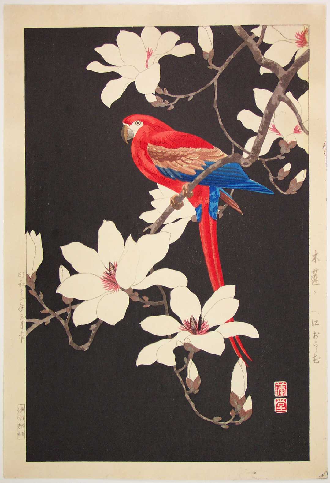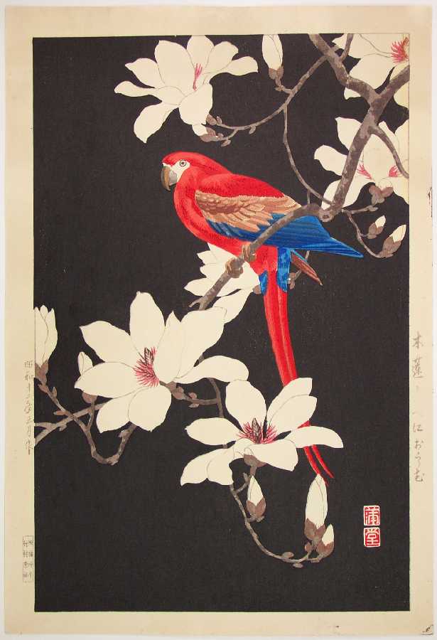 "Red Parrot and Magnolia"