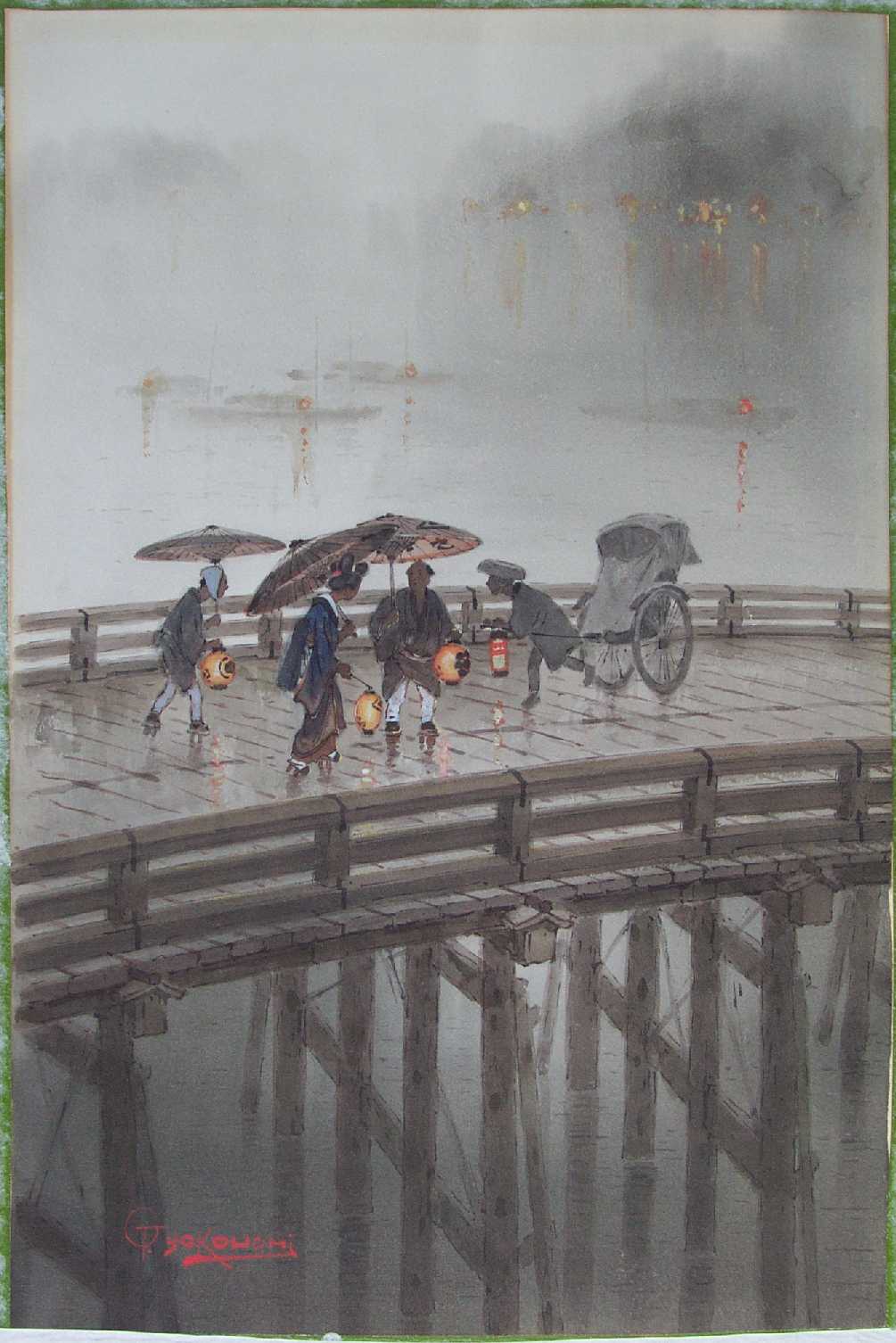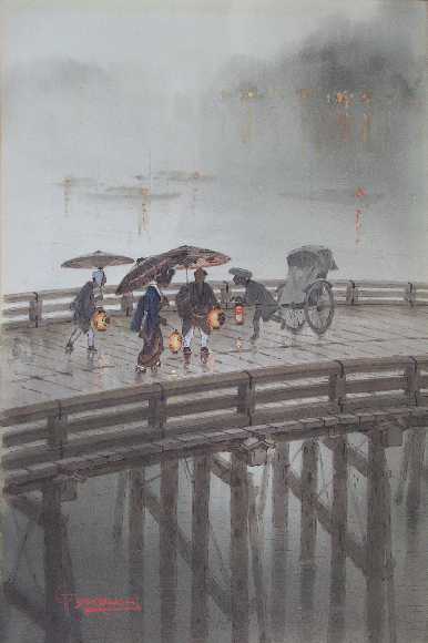 Reminiscent of Hiroshige's prints--this masterful work is clearly finest watercolor we've ever encountered.