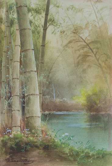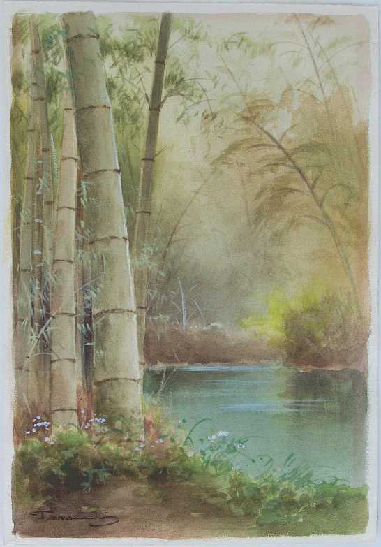 A prolific painter of landscape watercolors, Terauchi's paintings are recognizable for their