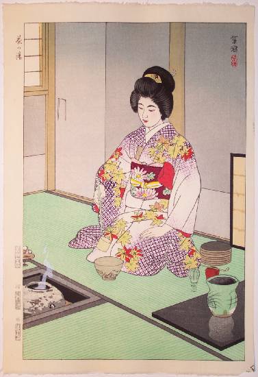 Very Fine. Nice "bokashi" shading; light over-printed "gofun" as steam; crisp "key-lines." (Very