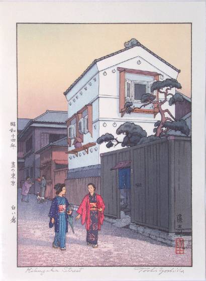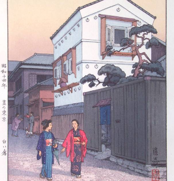 Beautiful, streetscene. (Print's actual title translation is "Tokyo at Daytime--White Storehouses.") |