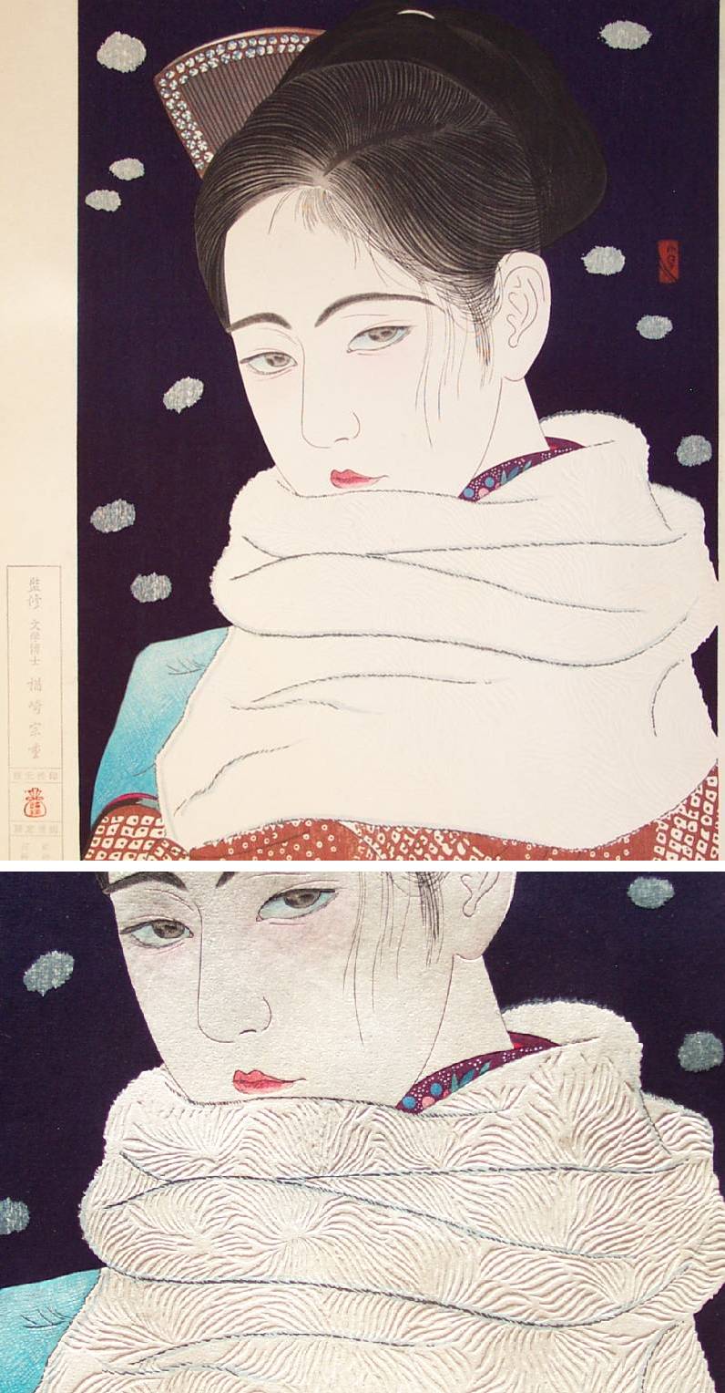 Very Fine. Extensively/deeply gauffraged (embossed); overprinted hairlines; skillful "bokashi" (gradation of