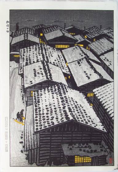 Very Fine. Nice "bokashi" shading; circular "baren sujizuri" printing to lower/left snow. |