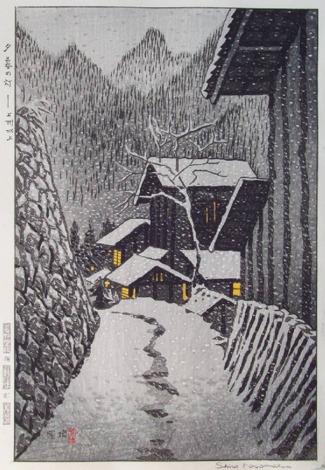 "Lights at Dusk - Minakami in Joshu" ("Yugure no Tomoshibi - Joshu Minakami") |