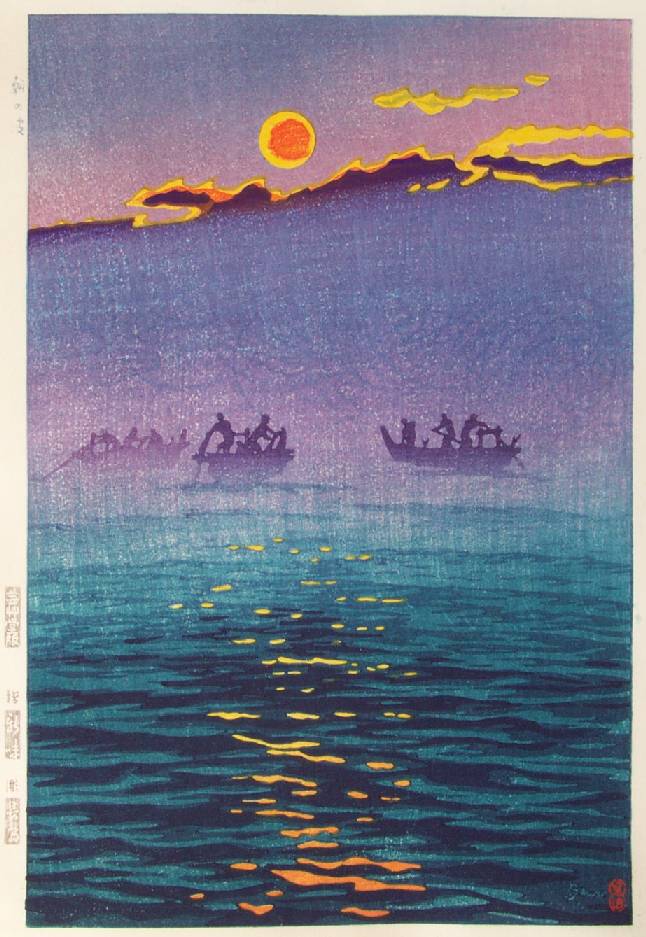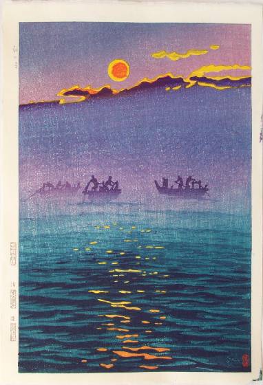 Very Fine. Nice "bokashi" shading; circular "baren sujizuri" printing. |