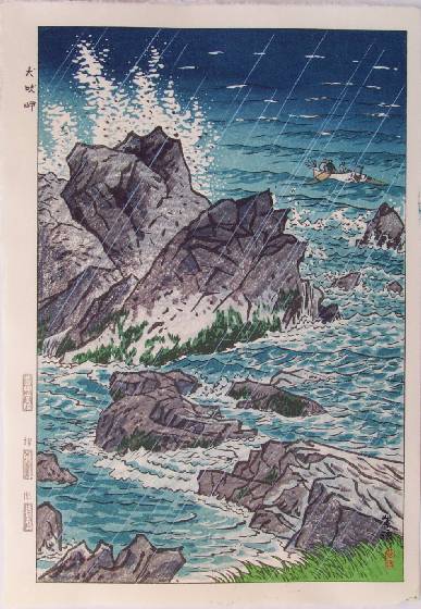 Very Fine. Nice "bokashi" shading; over-printed streaks of rain. |