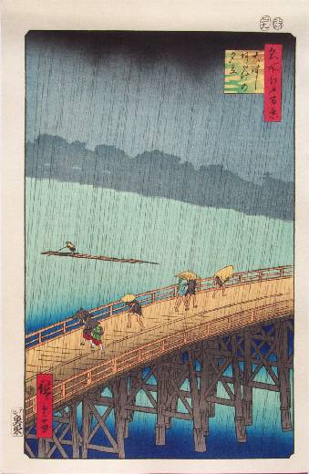 "Sudden Shower over Ohashi Bridge, at Atake" #58 ("Ohashi Atake no Yudachi") |