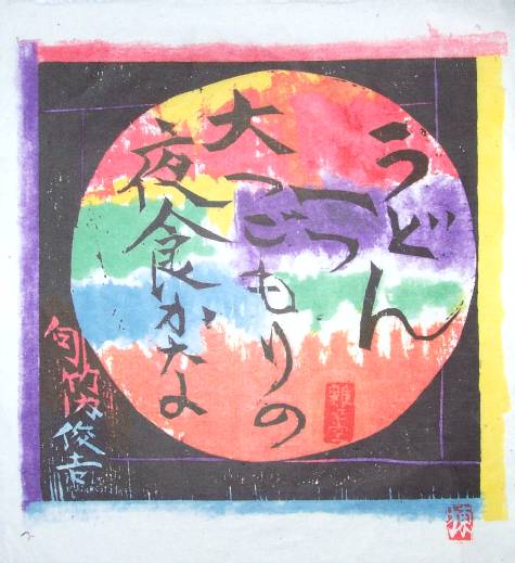 An attractive, bold "sosaku hanga" image. Commissioned by Yasukawa Electric Corp. as a "calendar print." |