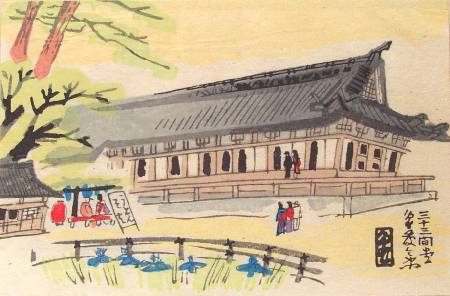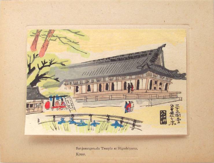 Fine. Delightful "semi-sosaku hanga" style carving; "bokashi" shading to rooftop; light "gauffrage" to clouds. |