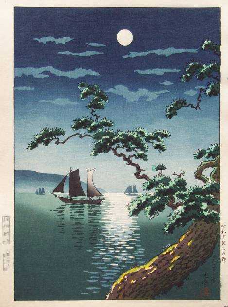 Very Fine. Superbly executed "bokashi" shading; wonderfully life-like reflection; great colors. |