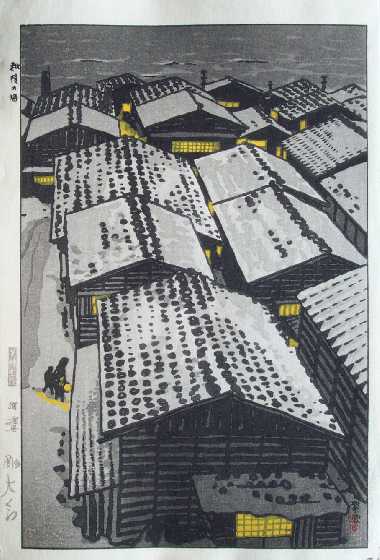 Very Fine. Nice "bokashi" shading; circular "baren sujizuri" printing to lower/left snow. |