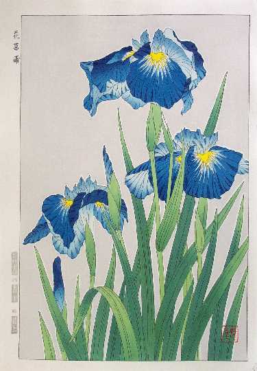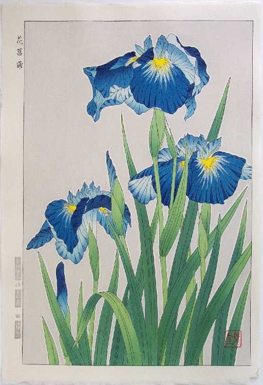Very Fine. Skillfully executed "bokashi" shading; deep "gauffrage" (embossing) to flowers and