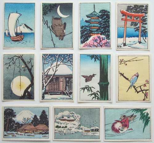Fine. Nice "bokashi" shading to sky and water areas; nicely detailed carving. |