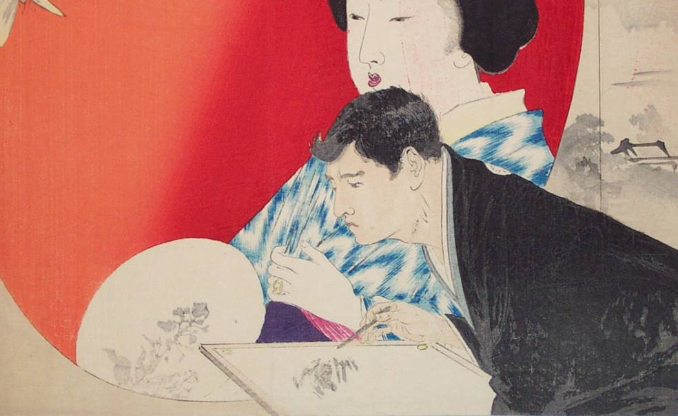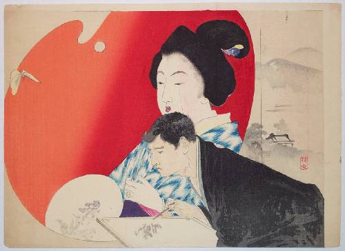 Very fine; superbly executed and extensive "bokashi" shading; "burnishing" to hair; crisply detailed lines. |