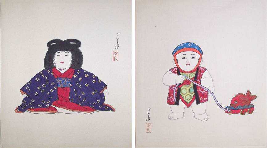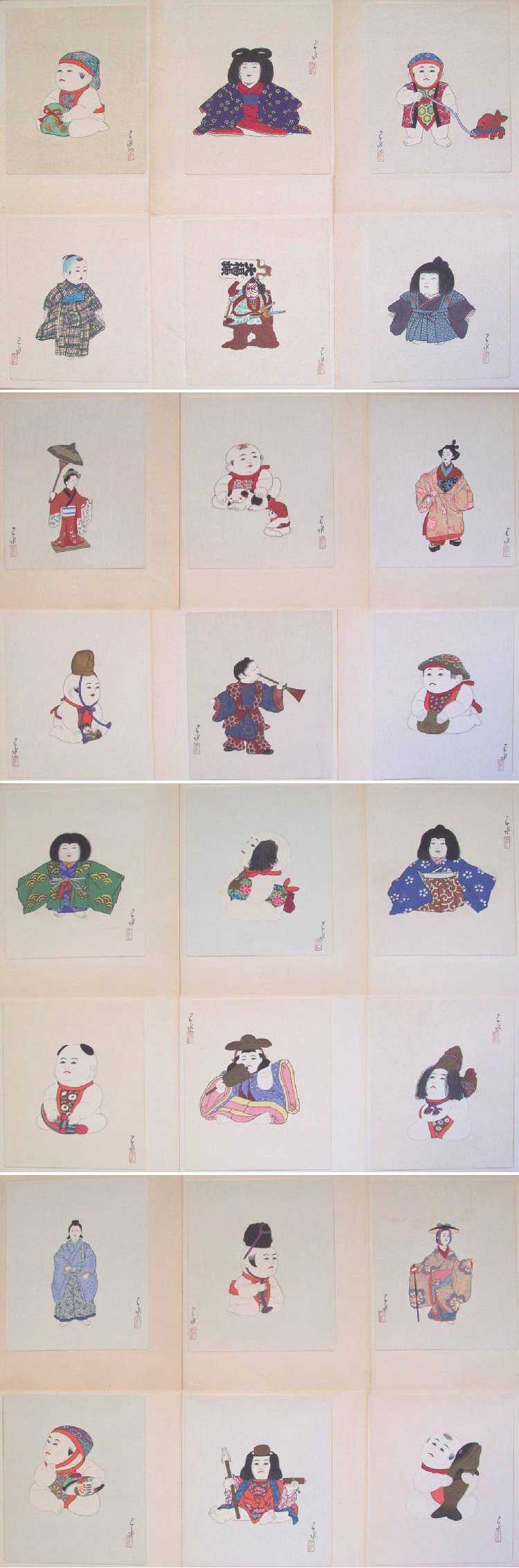 A complete set of 24 "Doll Prints" by Meiji-Shobo Publisher dating to 1935.