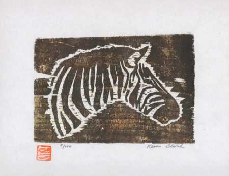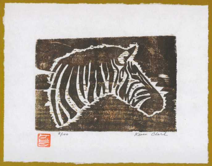 A boldly designed print. Once full edition of 100 prints completed, Clark "strikes his initials" into the
