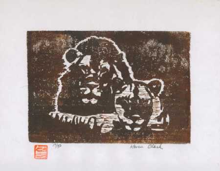 A boldly designed print. Once full edition of 50 prints completed, Clark "strikes his initials" into the