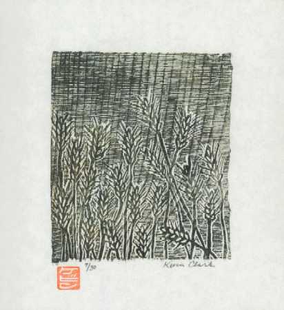 A nicely designed print. Once full edition of 30 prints completed, Clark "strikes his initials" into the