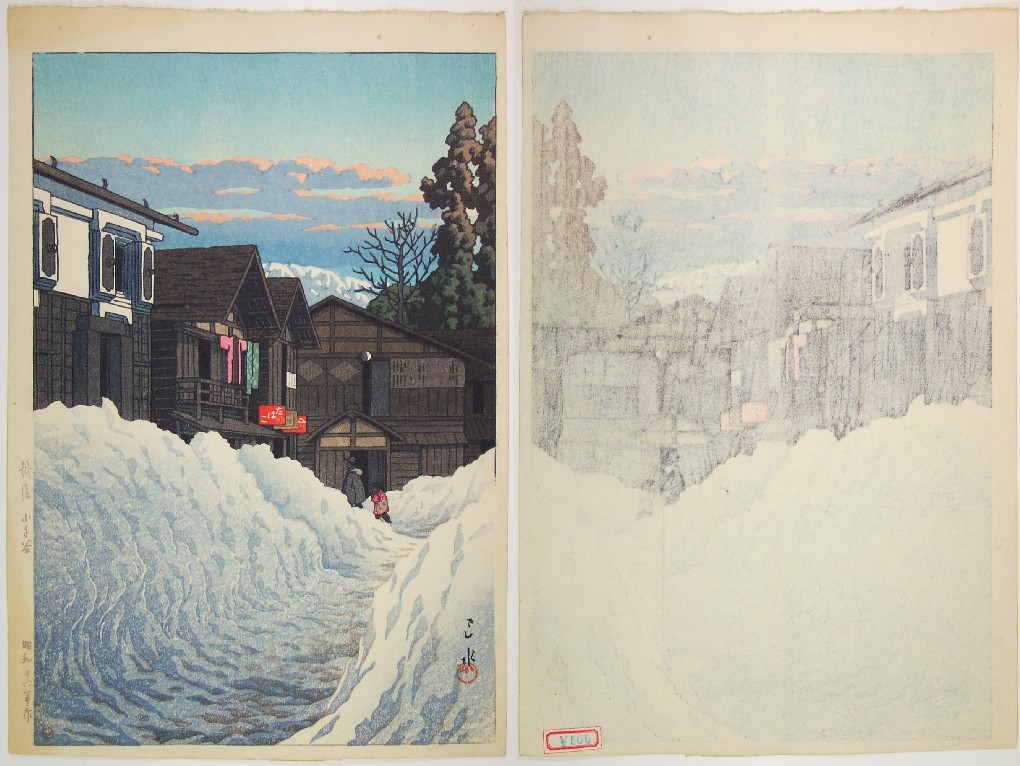 (embossing) to snow piles and clouds; baren "sujizuri"
