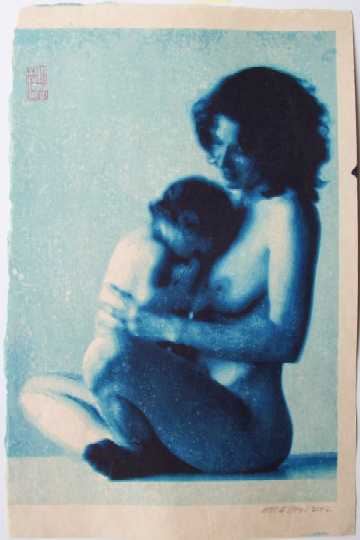 This darling shades-of-blue print is produced by 24 successive "reduction" cavings and printings--thusly