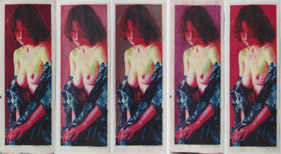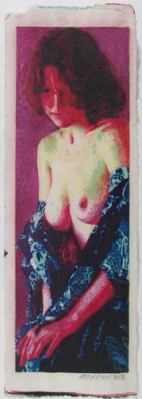 This sensuous tall-format print is produced from 4 basswood blocks using 28 successive "reduction" cavings and