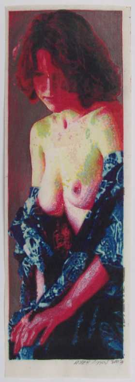 This sensuous tall-format print is produced from 4 basswood blocks using 28 successive "reduction" cavings and