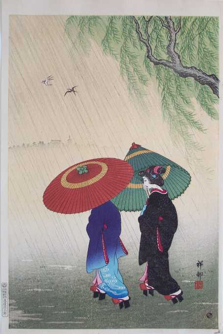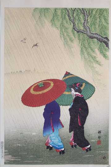 early summer shower. Quite a rare print--lack of later printings would indicate that "block-set" destroyed.