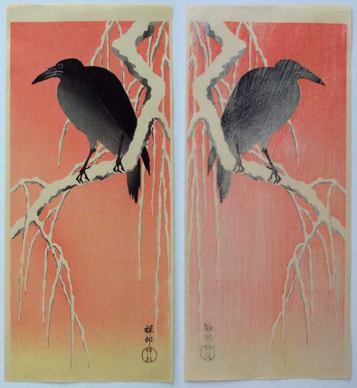 Classic Koson "crow on a branch" image set against an orange sky. |