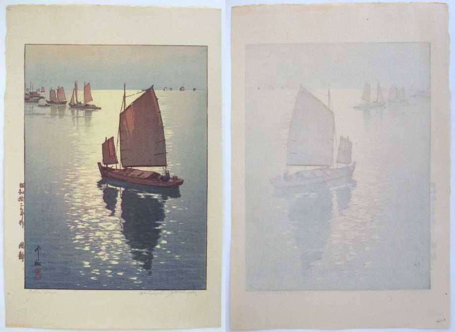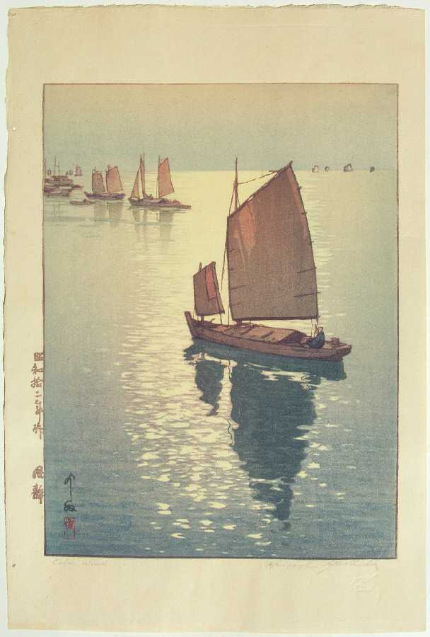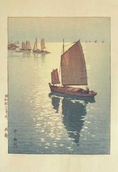A beautiful Yoshida "sailboat image." Seldom seen. Embossed "studio seal" lower margin. |