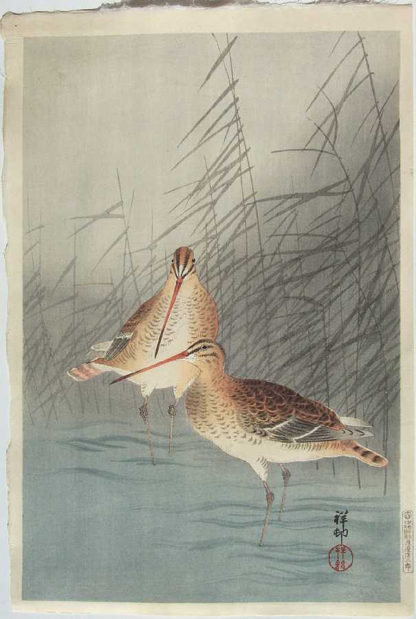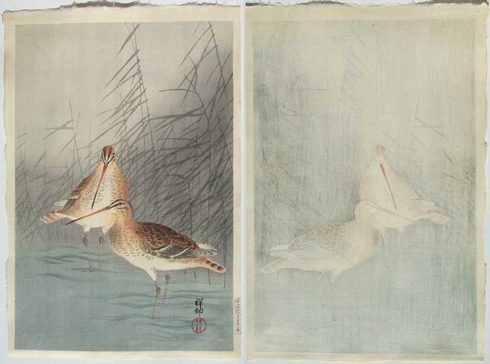 Very Fine. Skillfully executed "bokashi" shading; lightly "gauffraged" (embossed) outline of birds;