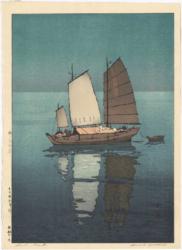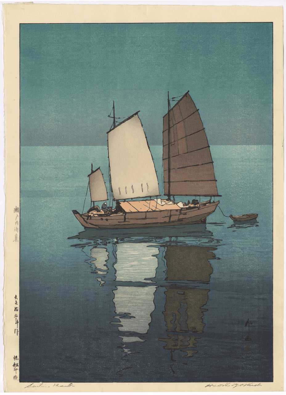 Very large ("double-oban"), beautiful Yoshida "sailboat" image. Seldom seen--impressively large format and difficult to print.